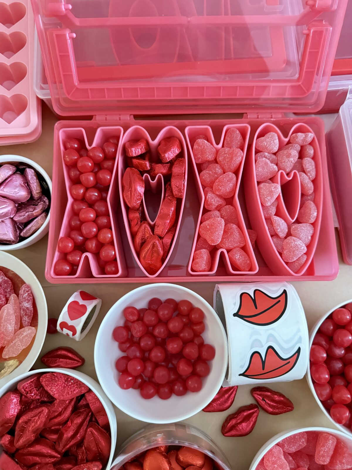 This year, I sent my daughters and their friends at college Valentine snack boxes, filled with treats to enjoy. Perfect for Galentine’s, family, or anyone who loves a treat. Plus, we love that you can use the trays on their own! We gathered all the supplies to make your own