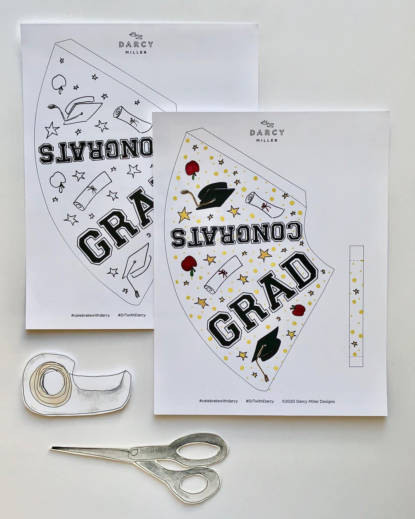 The pennants are the perfect size to attach to a wooden skewer or toothpick (or even a pencil!) and wave with joy as you help celebrate this milestone. Whether you wave on a Zoom call, tape to a gift as a festive add-on, or slip into a conGRADulatory card, your grad will feel celebrated.